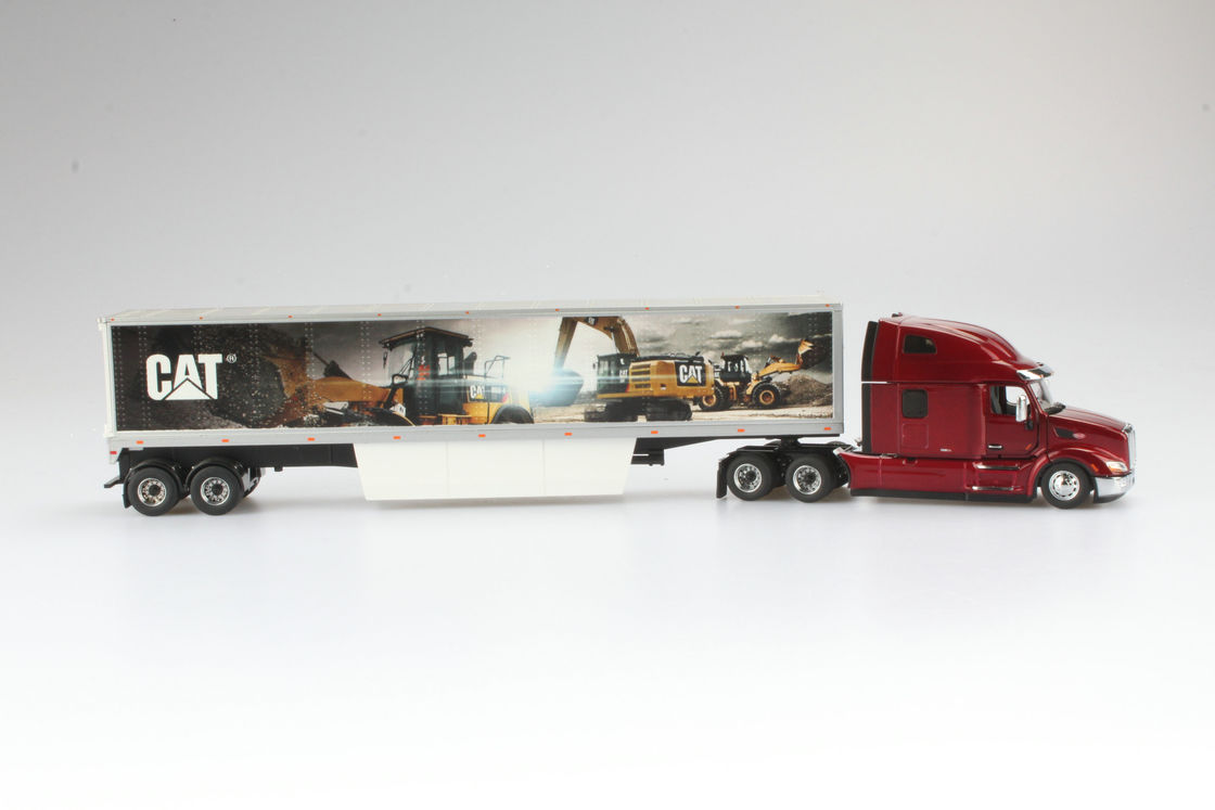 | Краска и наклейки | Подлинная краска Питербильта, темно-красная краска, фреска от Caterpillar на трейлере сухого фургона, подробные наклейки, полосы по правилам DOT |